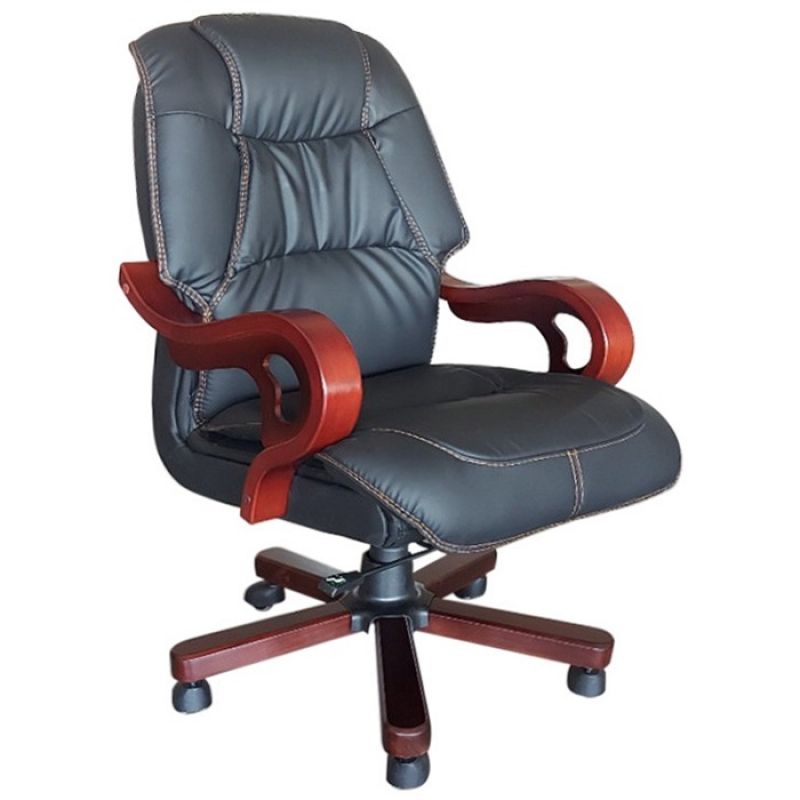Tay ghế được chế tác từ gỗ tự nhiên kết hợp thép bọc gỗ, tạo nên tổng thể vừa chắc chắn vừa tinh tế. Sự phối hợp hài hòa giữa da và gỗ giúp sản phẩm dễ dàng kết hợp với các dòng bàn giám đốc gỗ lớn, hoàn thiện không gian làm việc uy nghiêm và đồng bộ.