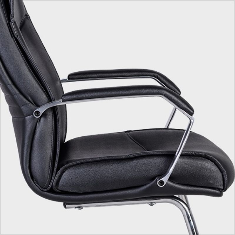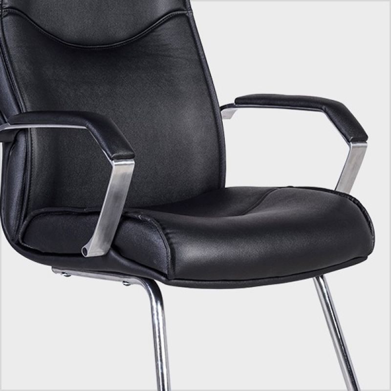Ghế họp SL9700M thuộc dòng ghế họp chân quỳ cao cấp, thiết kế cố định nhằm tạo sự trang nghiêm và ổn định cho phòng họp. Phần khung thép mạ sáng bóng được uốn cong liền mạch, sử dụng ống thép oval chịu lực tốt, hạn chế rung lắc và chống gỉ sét hiệu quả. Chân ghế tiếp xúc sàn có nút nhựa bảo vệ, giúp di chuyển nhẹ nhàng và tránh trầy xước mặt sàn.